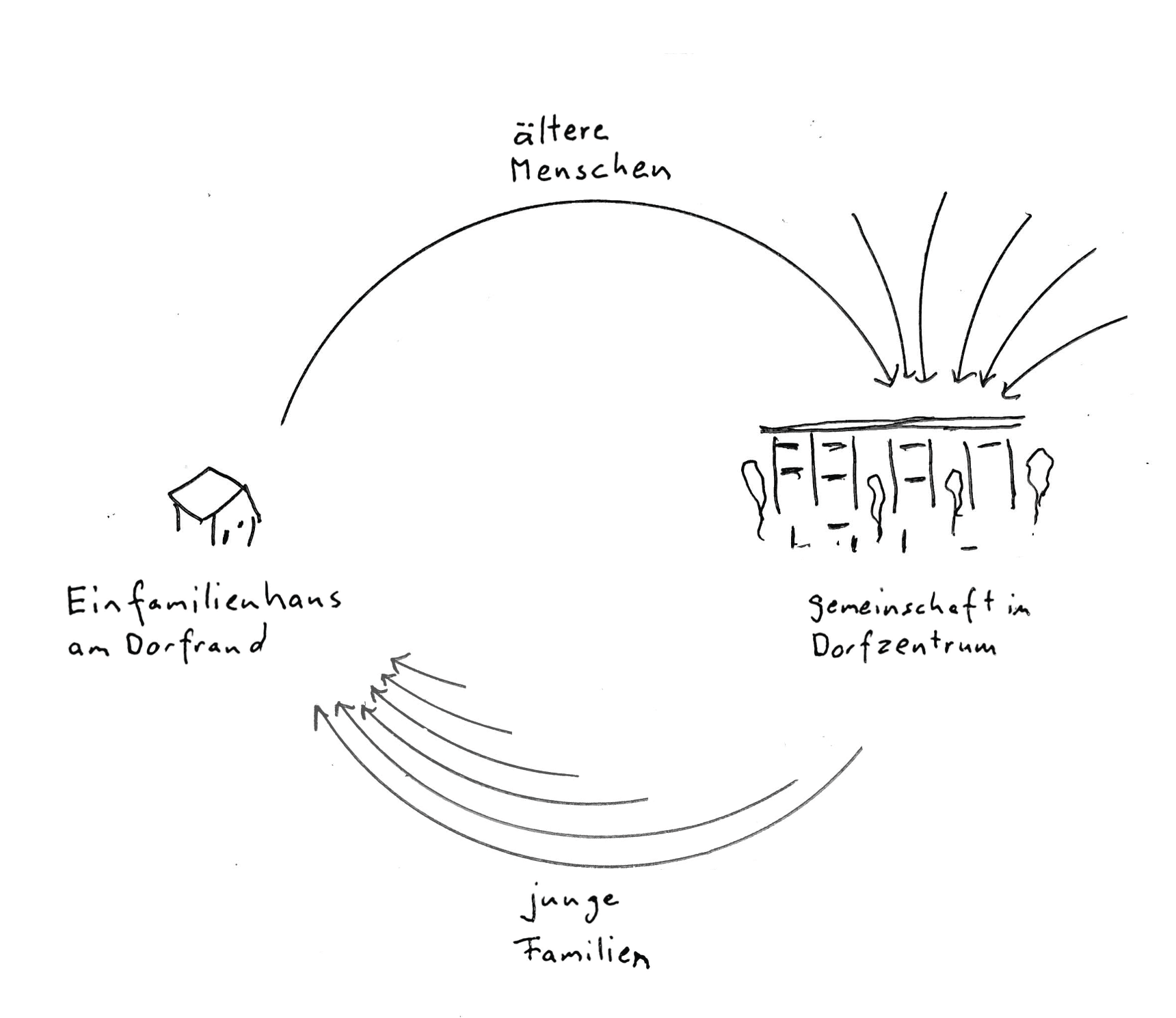 Wenn ältere oder alleinstehende Menschen aus übergroßen Einfamilienhäusern in zentral gelegene Kleinwohnungen ziehen, bleiben sie in ihrer gewohnten Umgebung – mit allen wichtigen Dienstleistungen in fußläufiger Entfernung. Gleichzeitig werden Einfamilienhäuser für junge Familien verfügbar. So entsteht ein nachhaltiger Wohnkreislauf für alle Generationen.