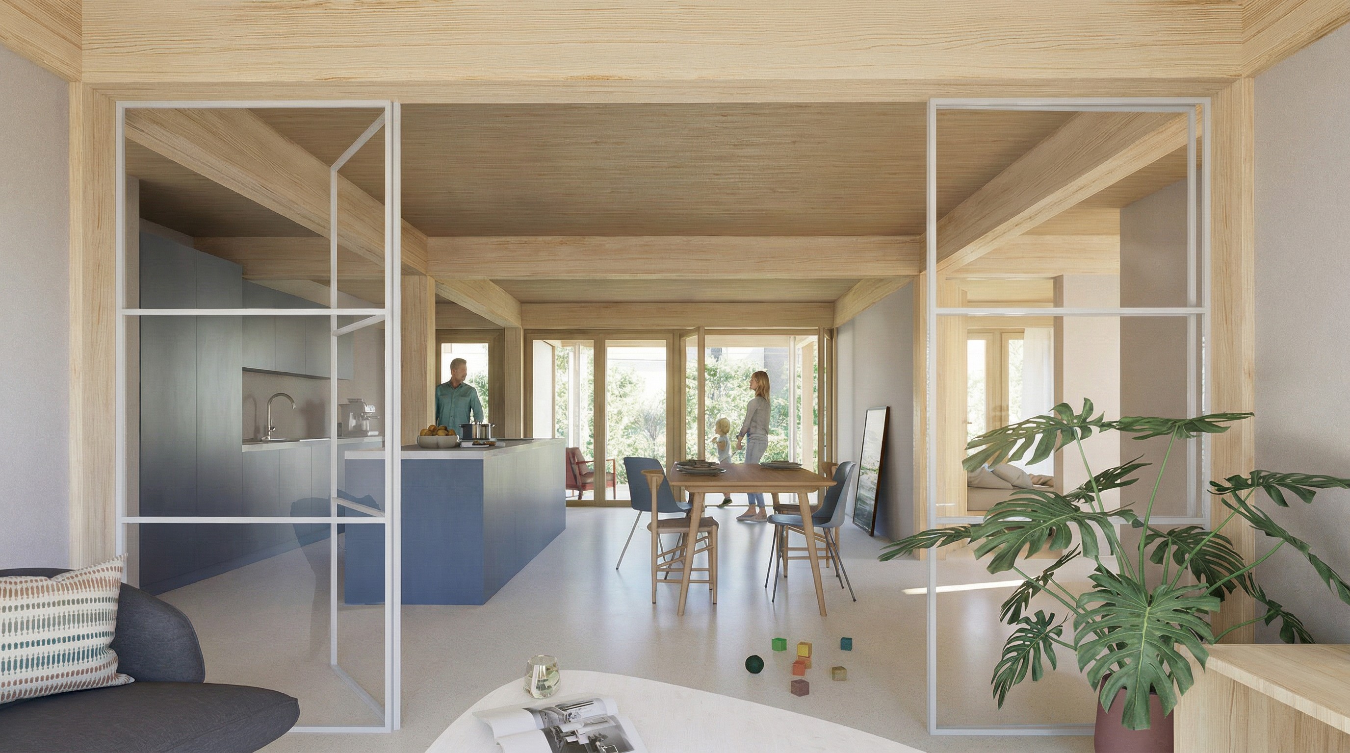 This project proposes adaptable housing organised around shared space, simple construction and long-term use. Flexible apartment layouts allow the building to respond to changing household structures over time.