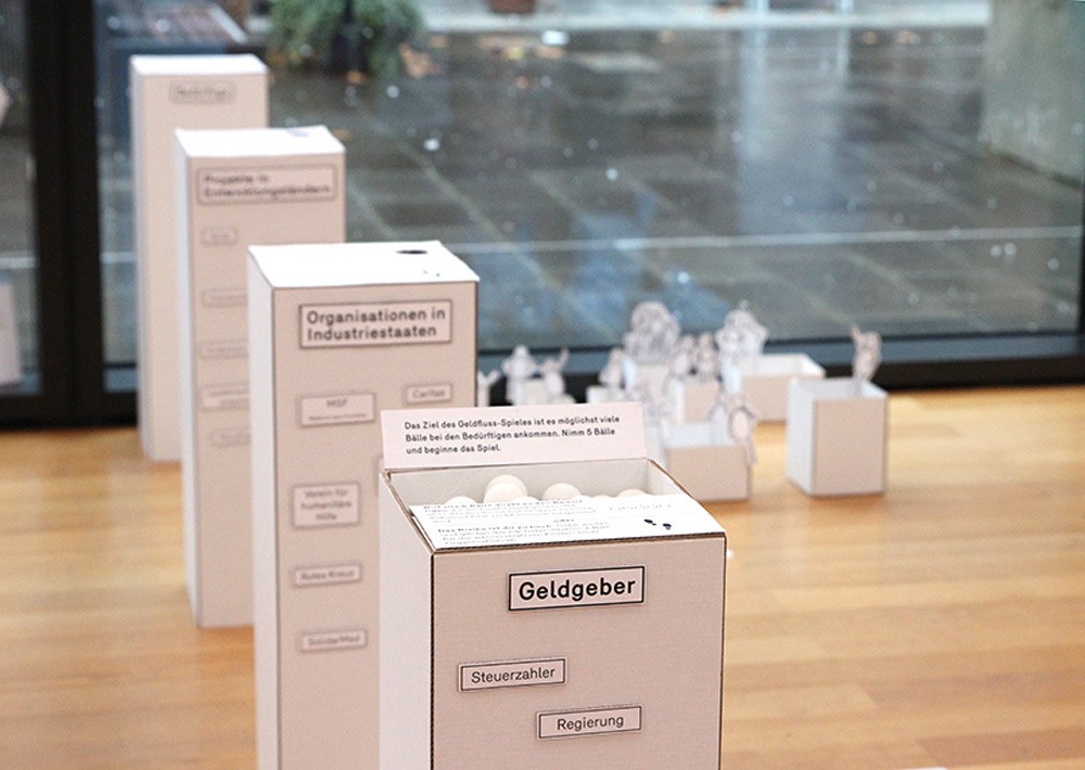 Die Ausstellung untersucht kritisch das Feld, das sich die Bekämpfung von Armut zur Aufgabe gemacht hat. Was lange als «Entwicklungshilfe», dann als «Entwicklungszusammenarbeit» und heute als «internationale Zusammenarbeit» bekannt ist, wird gleichermassen gelobt und scharf kritisiert. Was ist seine Geschichte? Was ist sein Kontext? Funktioniert es?