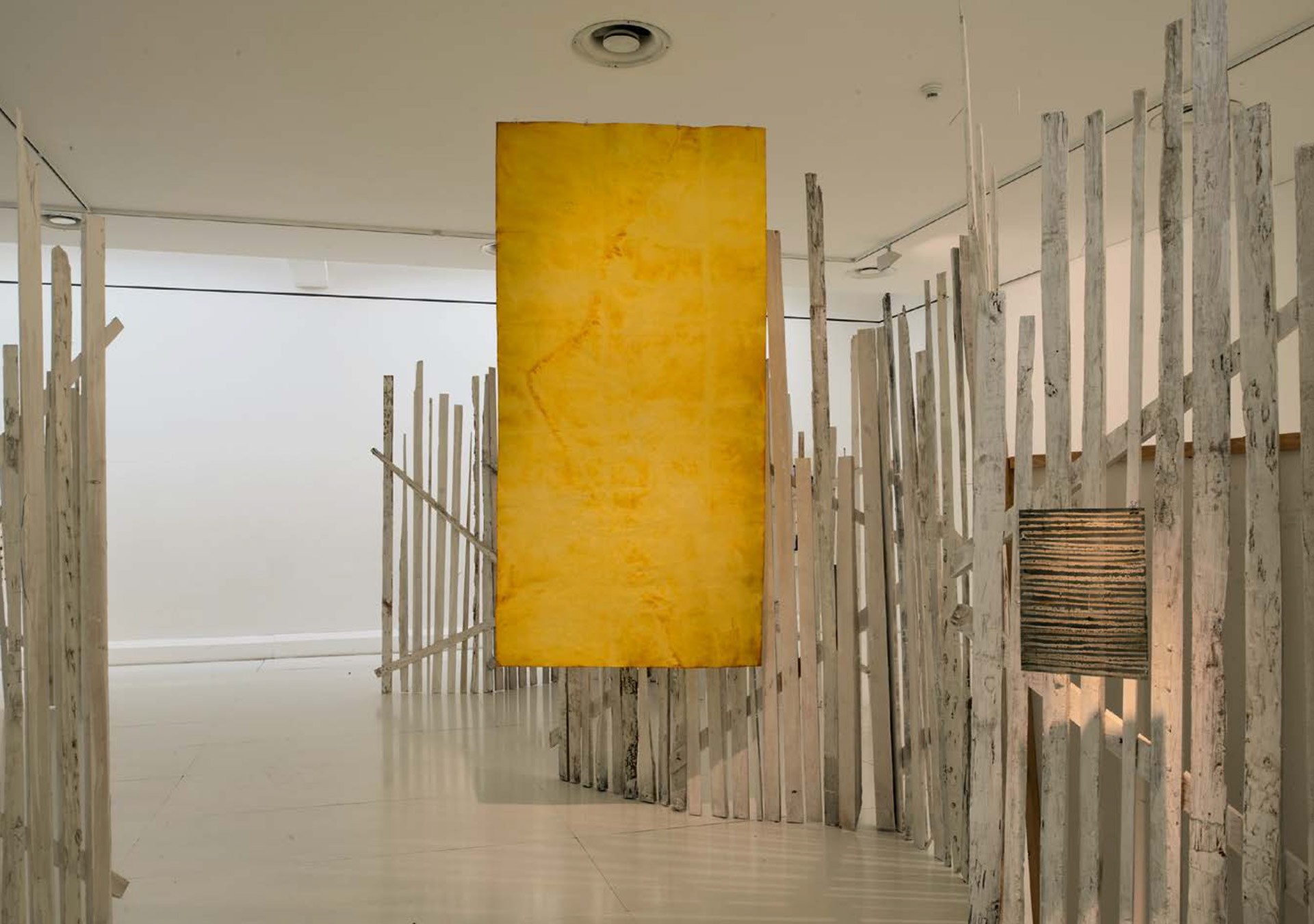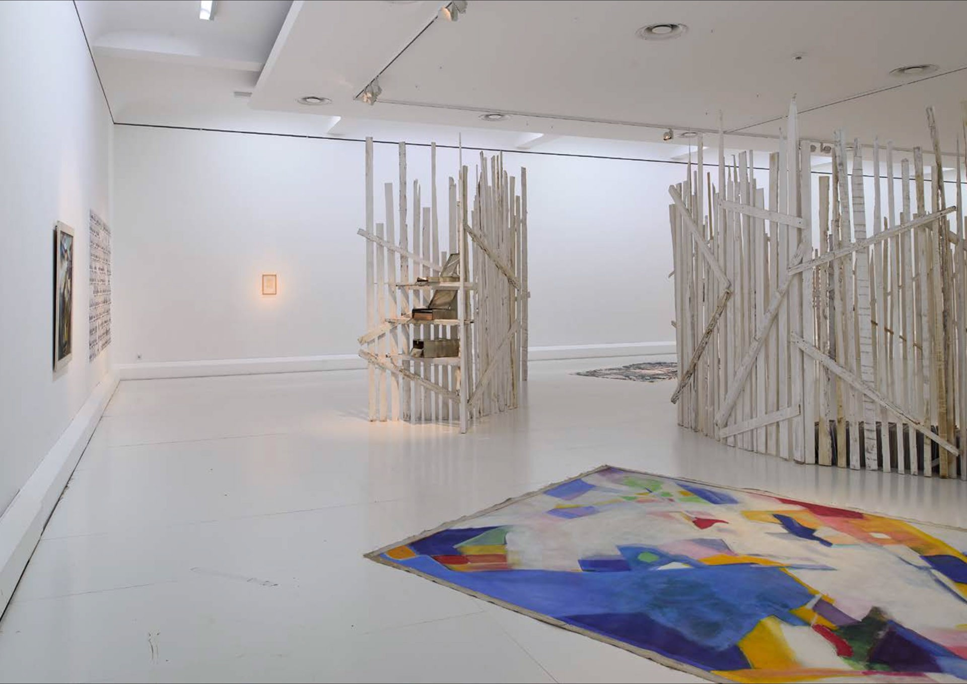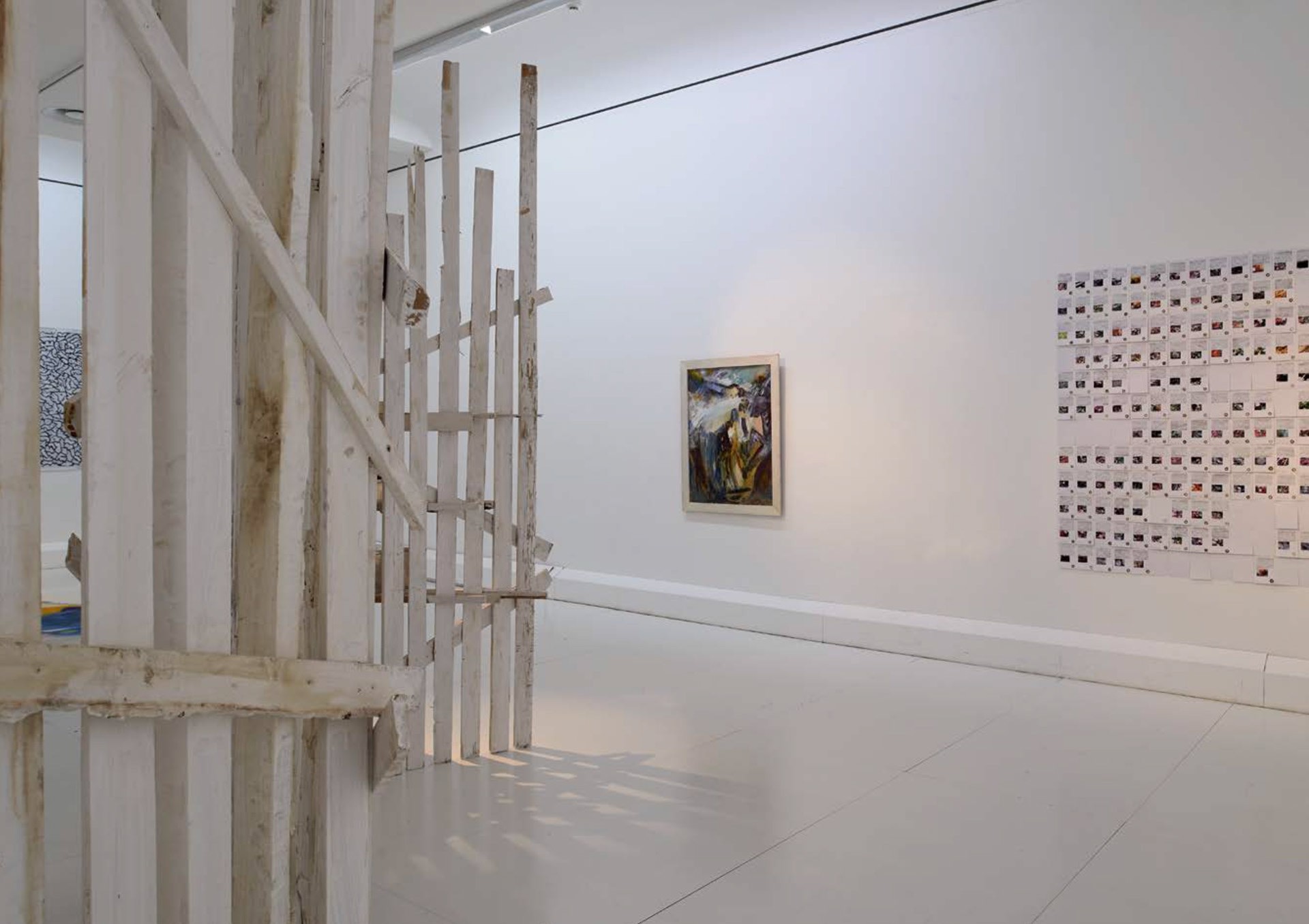 Um die Arbeit zu vermitteln, die oft nur sehr wenig inhaltlich und ästhetisch gemeinsam hatte, entwarfen und bauten wir eine räumliche Struktur aus verworfenem Holz. Der weiße Würfelraum des Kunstraum Engländerbau wurde mit einer Rauheit und Unvollkommenheit kontrastiert, die den Kunstwerken einen ungewöhnlichen Kontext verlieh.