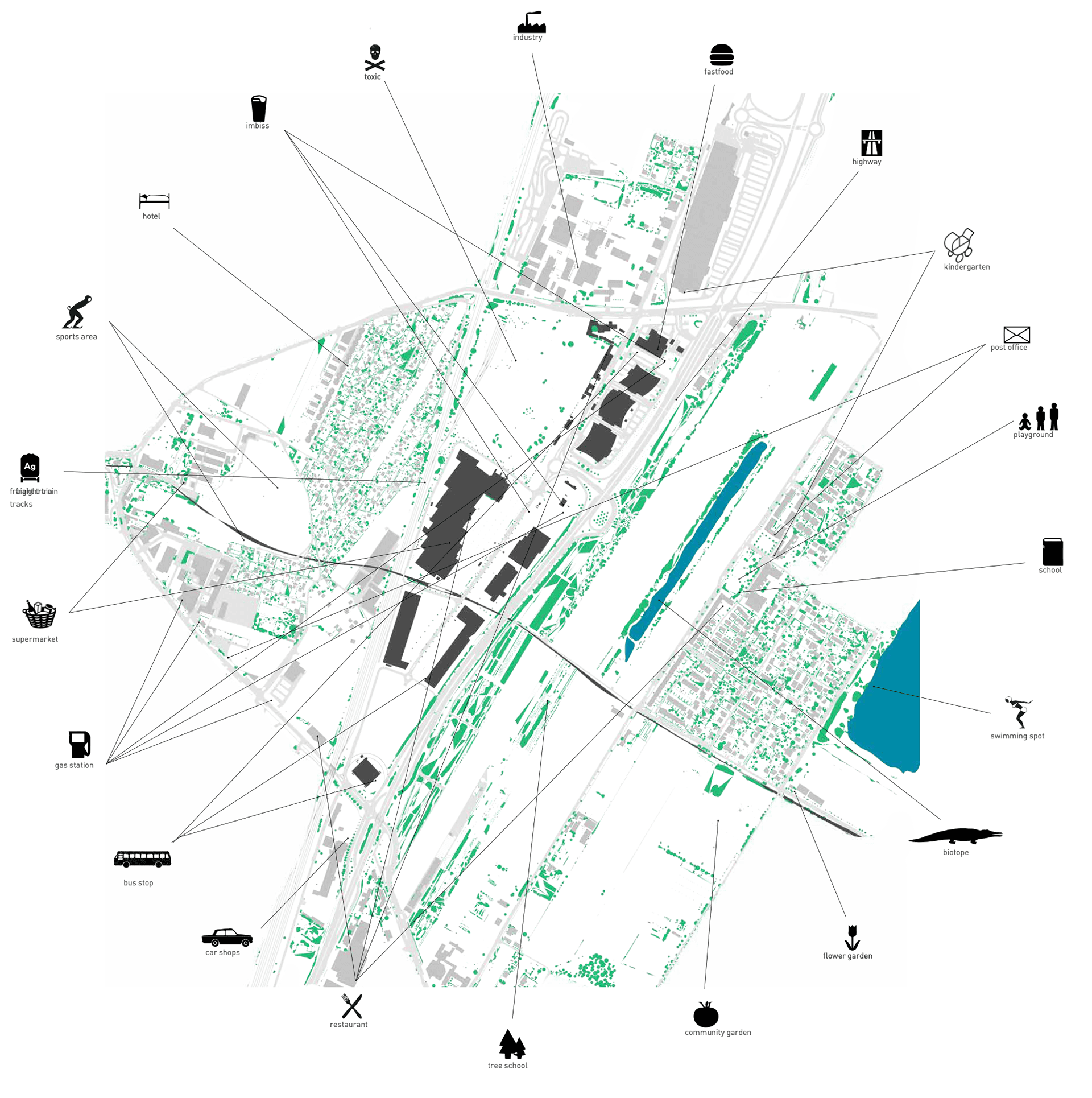Wie lässt sich ein monofunktionales Einkaufsviertel zwischen Bahnlinie und Autobahn entwickeln? In diesem Wettbewerb schlugen wir den Bau weiterer Einkaufszentren als trojanisches Pferd für eine lebendige, gemischt genutzte Entwicklung vor.
