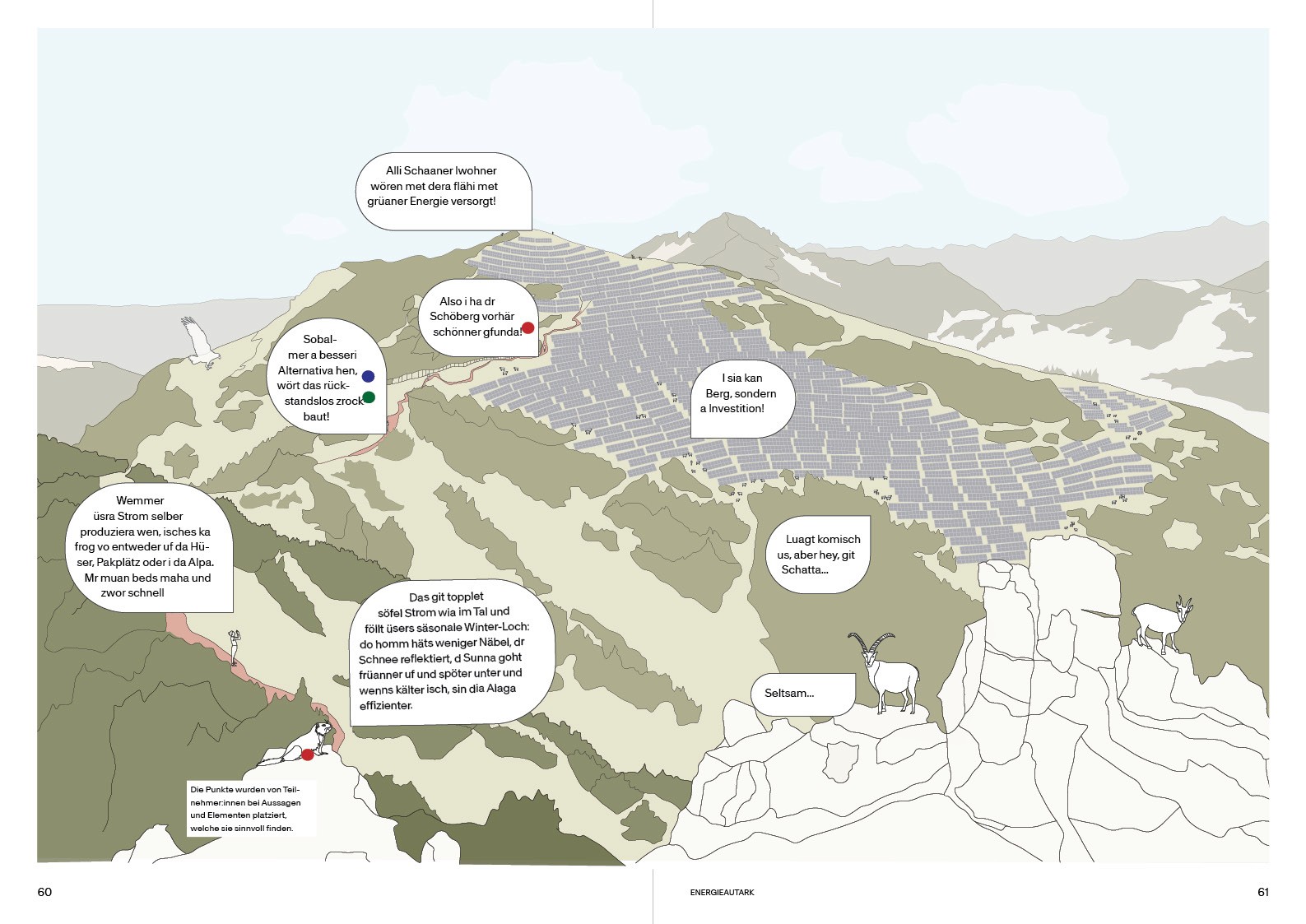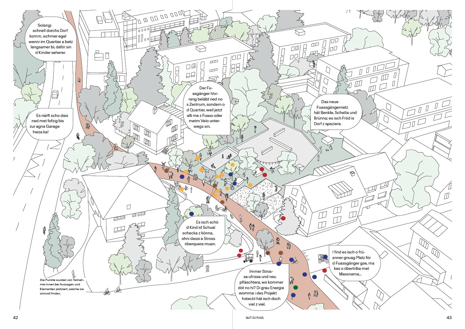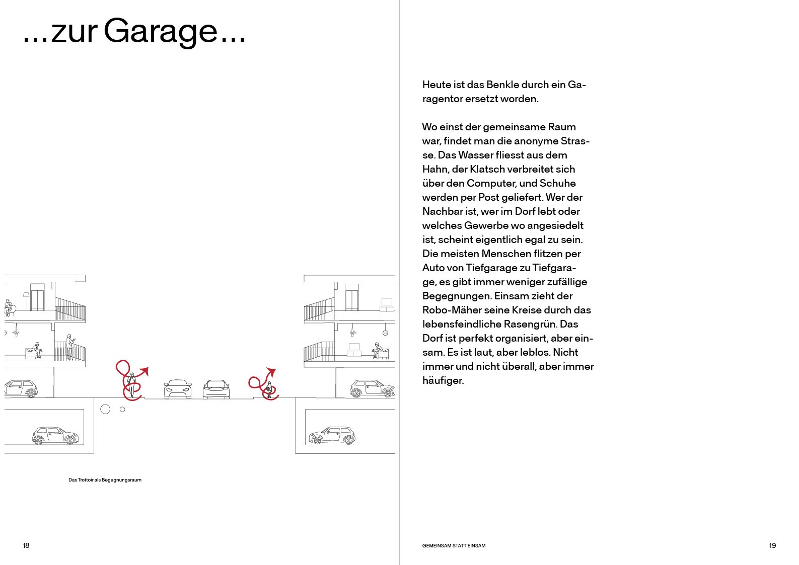Zur Anregung der Diskussion entwickelten wir unterschiedliche Szenarien und übersetzten mögliche Zukünfte der Gemeinde in konkrete Bilder und räumliche Vorstellungen.